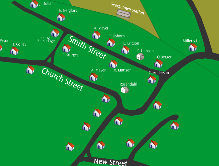 tracks), D.H. Miller on the right past the tracks and H. St.