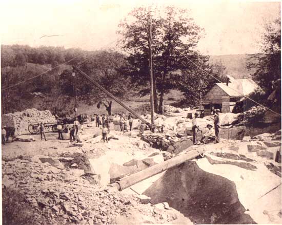 quarry. The three men on the right are drilling by the "Double