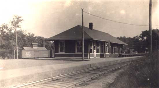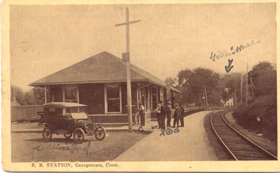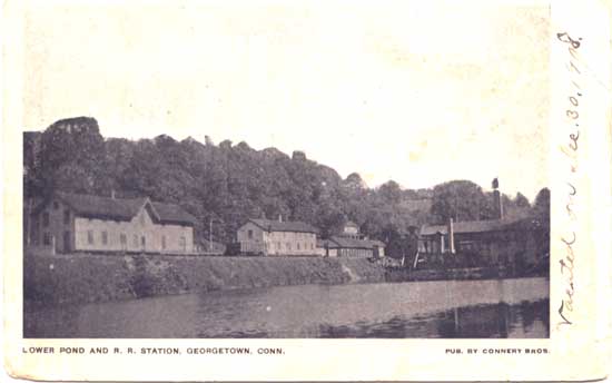 Pond and R.R. Station in Georgetown. Postcard reads;