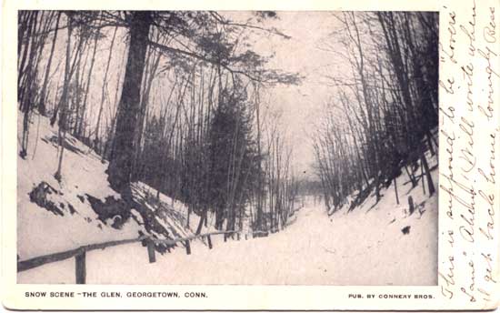 Scene- The Glen, Georgetown Conn. Postcard reads: "This