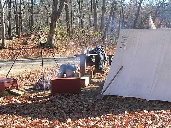 CT. Shows huts, camp fires and stacked arms.