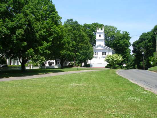 Anglican Church is to the left, Meeker's Tavern to the right.